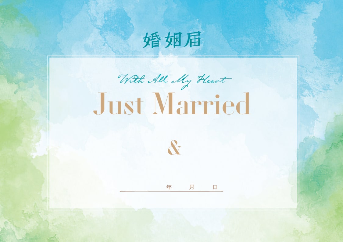 婚姻届「スカイブルー×フレッシュグリーン」の表面