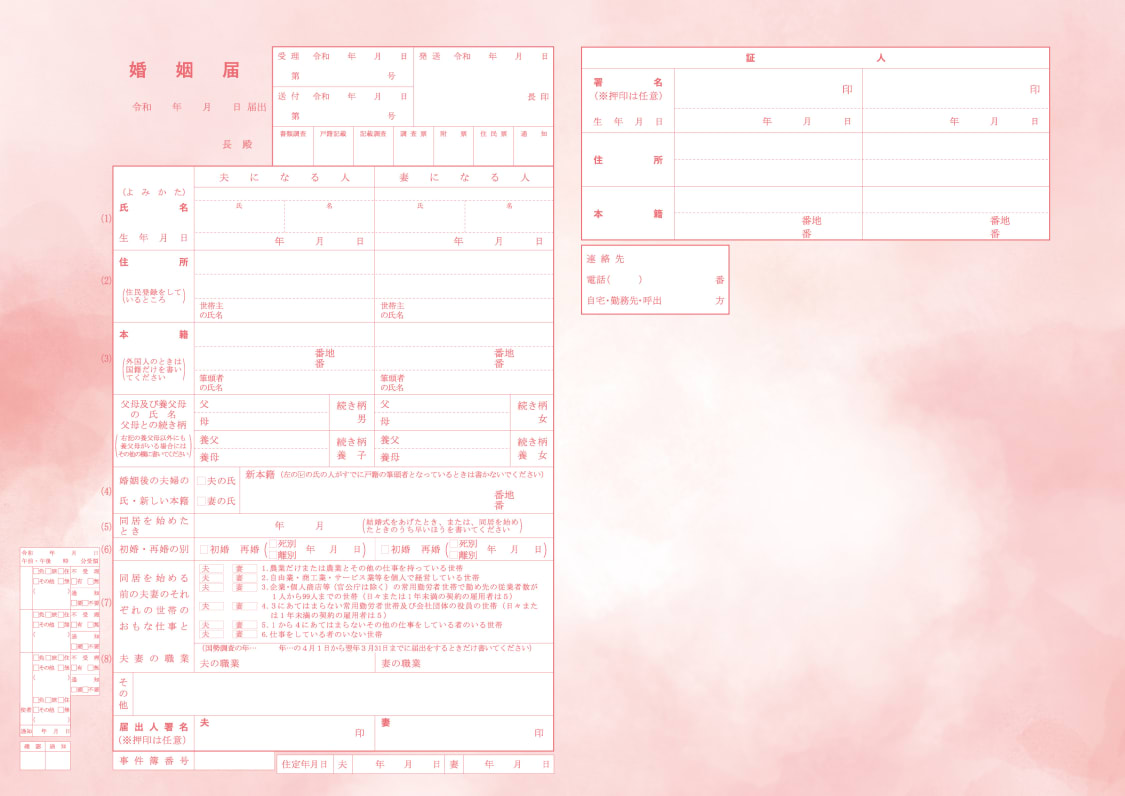 婚姻届「ブロッサムピンク」の裏面