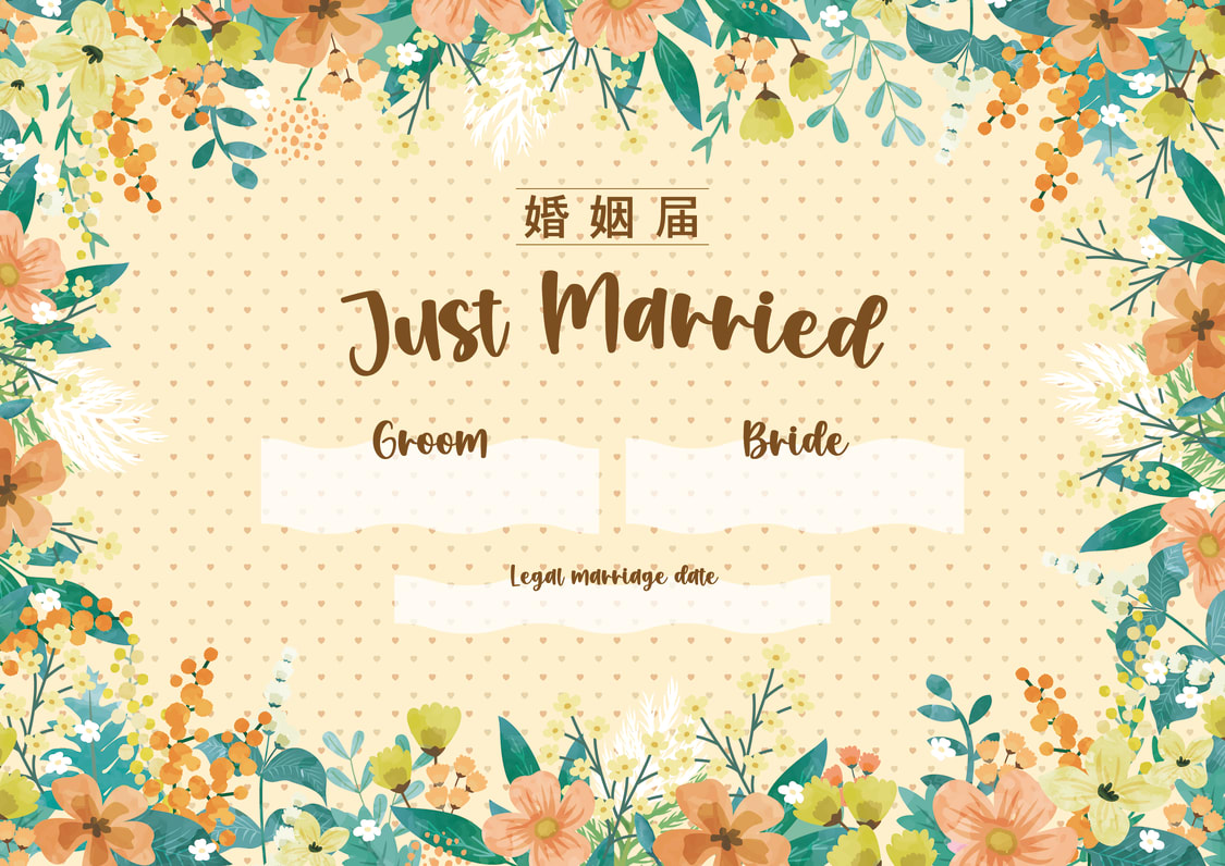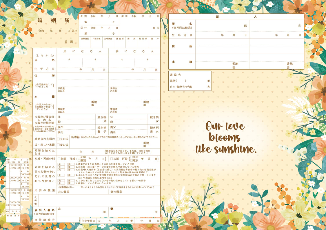そんな言葉を添えた、黄色とオレンジの花々が咲き誇る明るく可憐な婚姻届です。