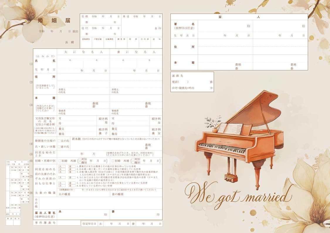 婚姻届「花とピアノ」の裏面