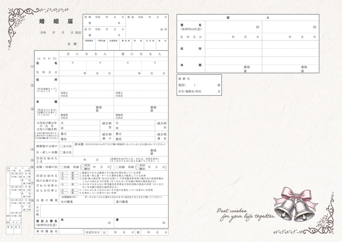 2. 本サービスは、ご利用者様が婚姻届の届け出先において本サービスで提供する婚姻届が受理されることを完全に保証するものではありませんので、婚姻届の届け出先窓口において、その受理の可否をご確認ください。