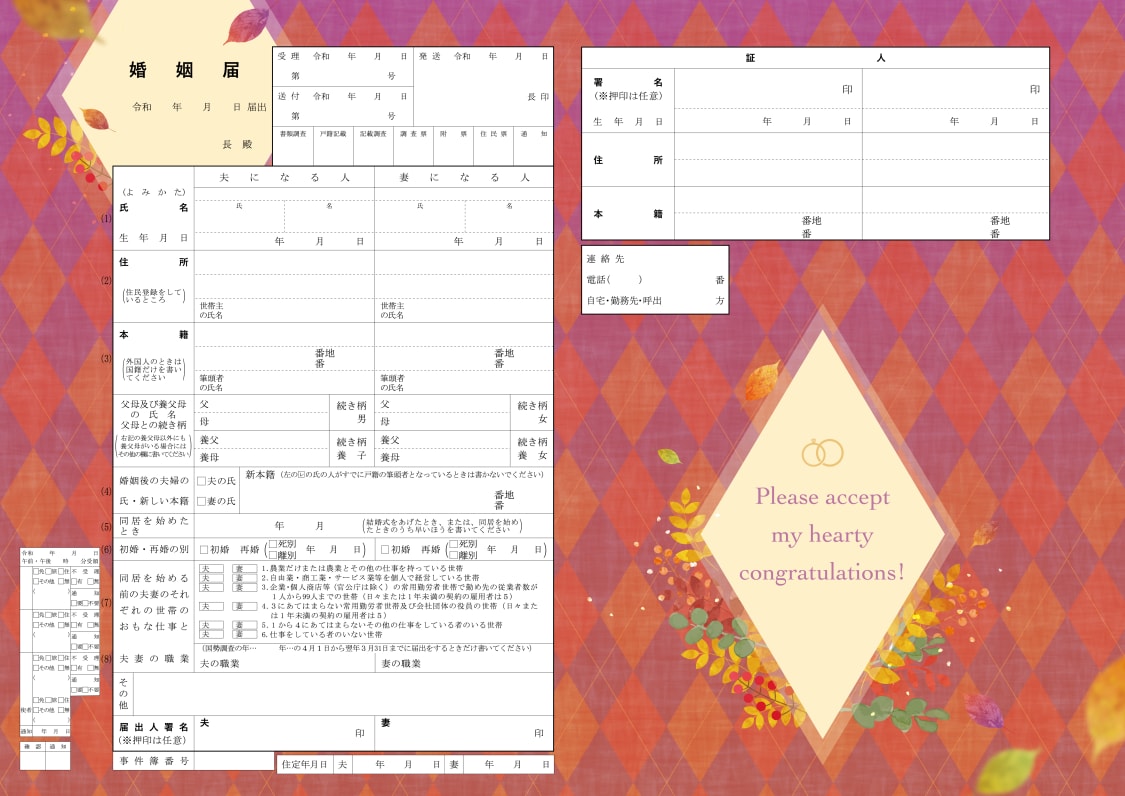 華やかで温かみを感じられるような婚姻届をデザインいたしました。