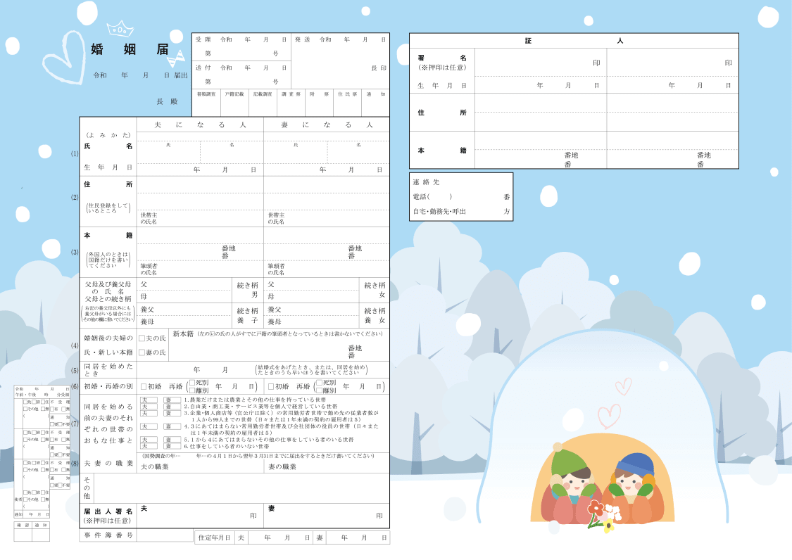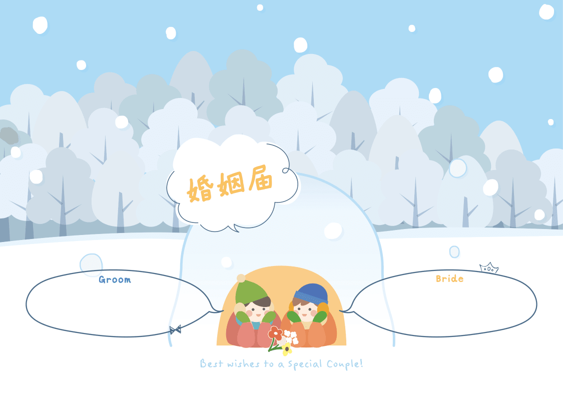 婚姻届「雪明かりのかまくら 〜ふたりの温かな場所〜」の裏面