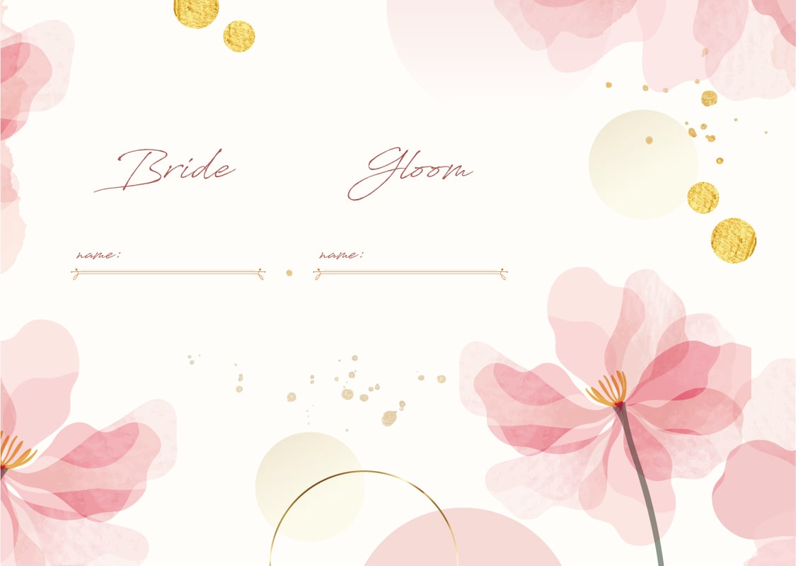 淡いピンクの花びらと金色の円は、新たな門出を祝福し、華やかさと柔らかな幸福感を演出。