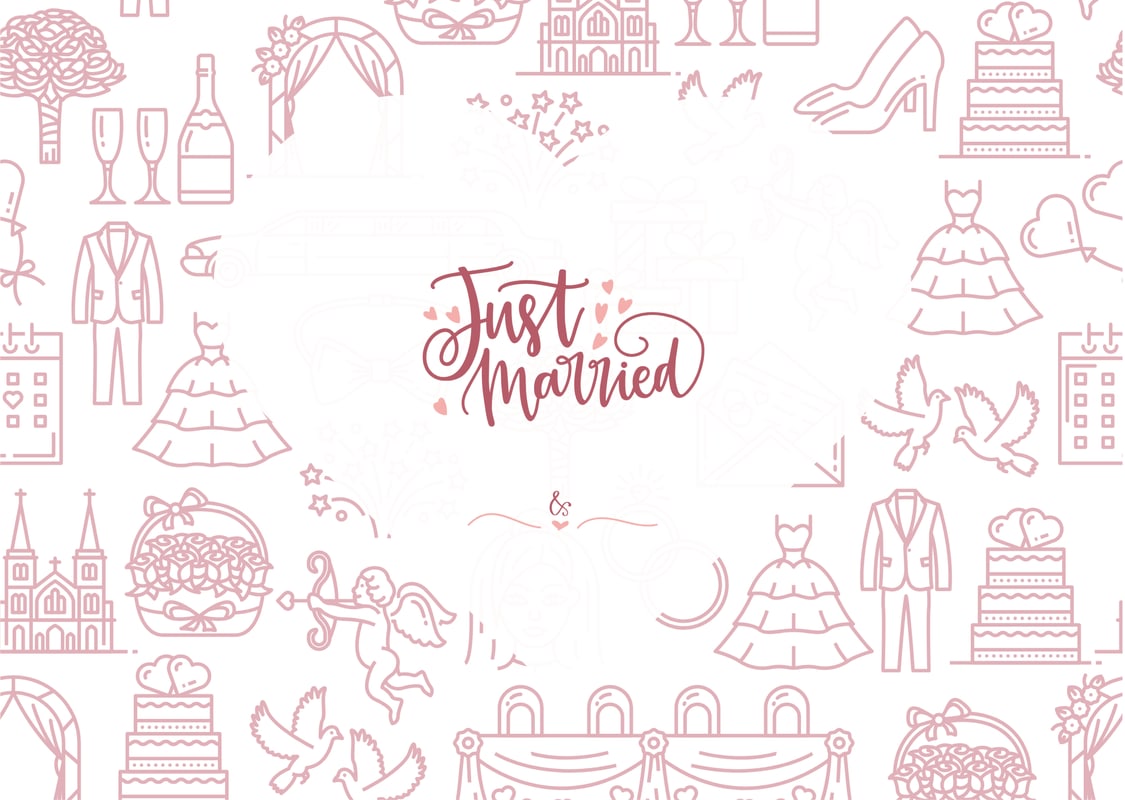 この婚姻届は、結婚の喜びと幸せを象徴するイラストを全体に散りばめたデザインです。