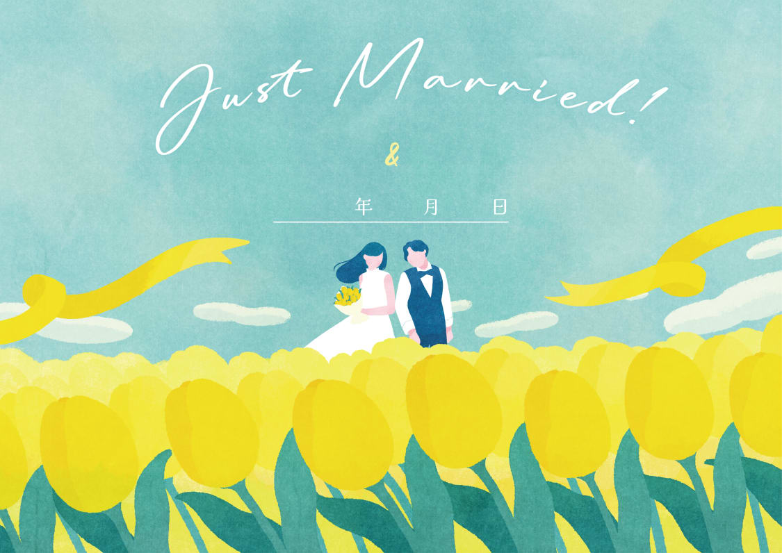 新たな人生の一歩を、春風のように爽やかなデザインで彩る婚姻届です。