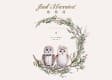 真正面を向いて並ぶふくろうの夫婦の姿は、これからの人生をともに歩む誓いの象徴。