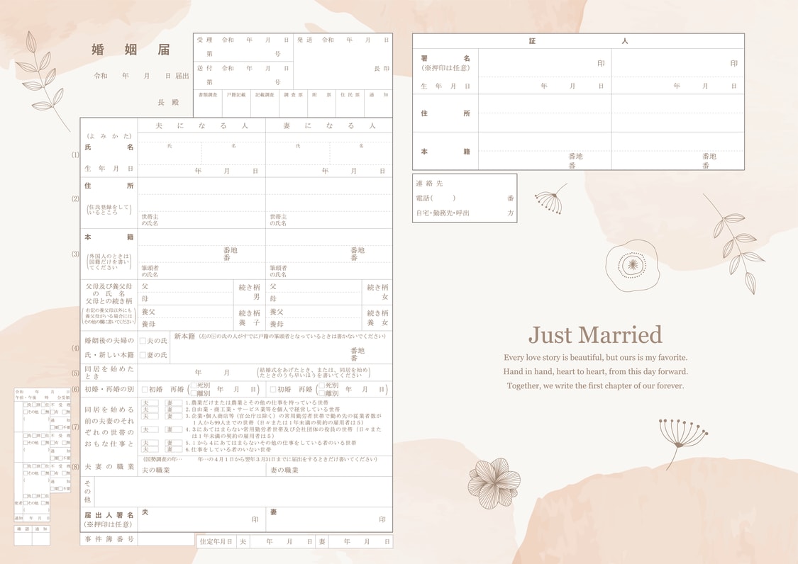 この婚姻届が、おふたりの新たな門出を彩り、これからの人生を共に歩む誓いの証となりますように。 - 作成者