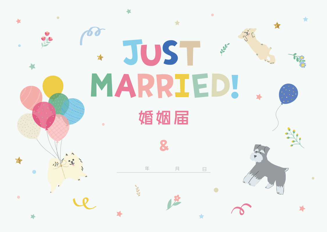 婚姻届「愛と笑顔をワンちゃんと共に」の表面