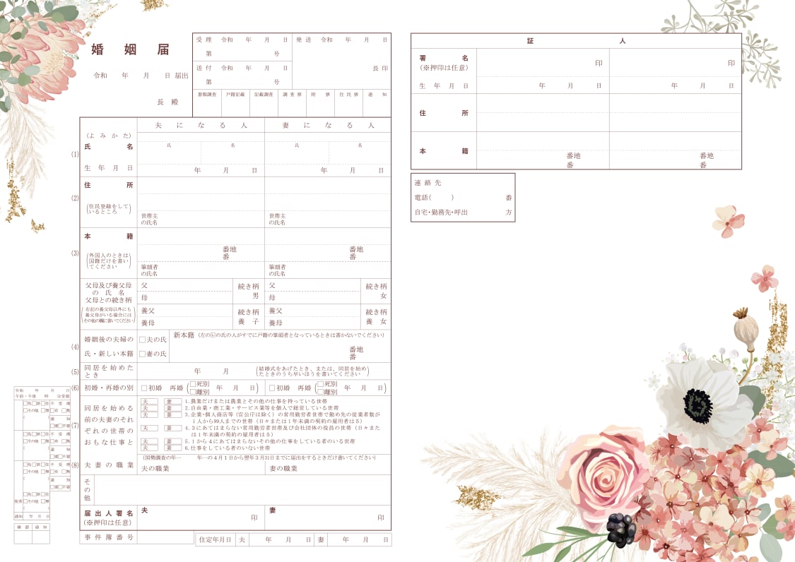 婚姻届「シックな花と色彩で作る未来のストーリー」の裏面
