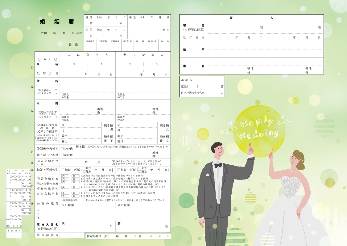 2. 本サービスは、ご利用者様が婚姻届の届け出先において本サービスで提供する婚姻届が受理されることを完全に保証するものではありませんので、婚姻届の届け出先窓口において、その受理の可否をご確認ください。