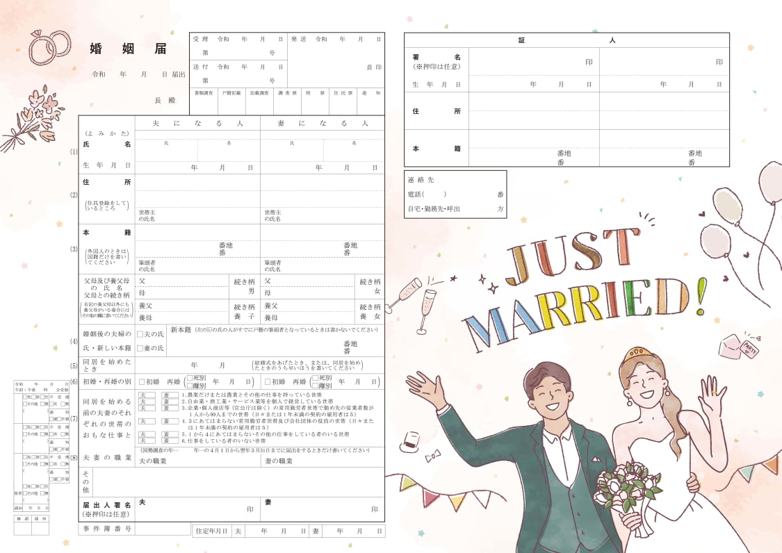 カジュアルな雰囲気の中に、特別な日のわくわく感がギュッとつまったような婚姻届です。