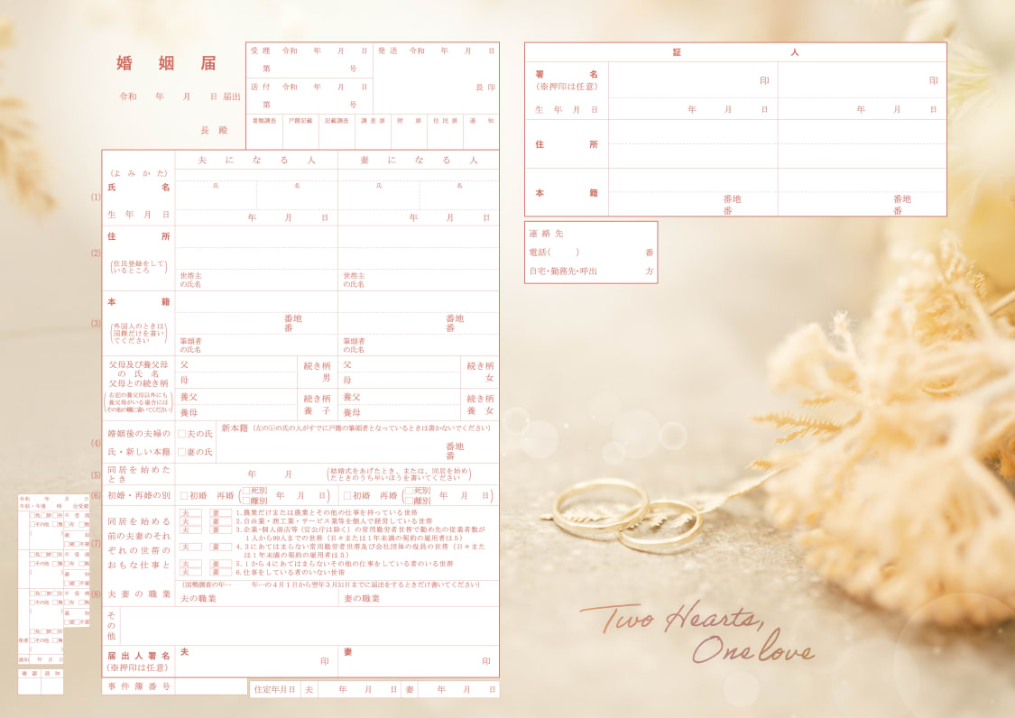 婚姻届「重なり合う指輪とふたりの物語」の裏面