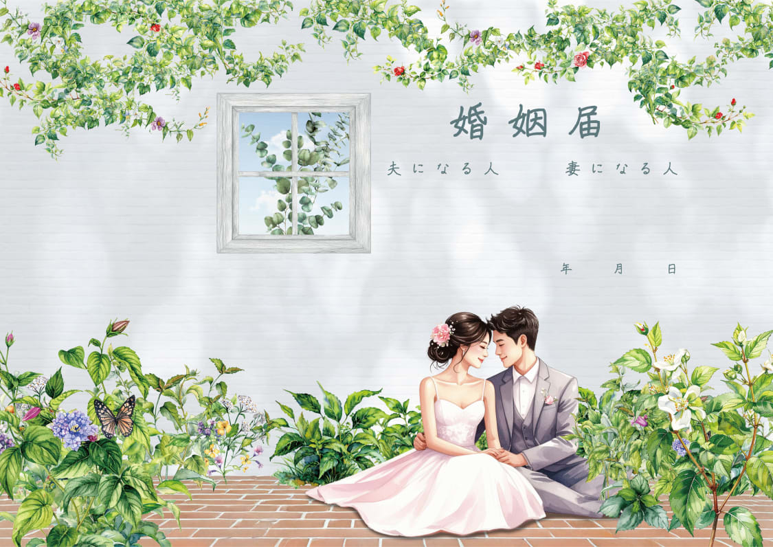 婚姻届「名を結ぶ、この庭はふたりだけの詩。」の表面